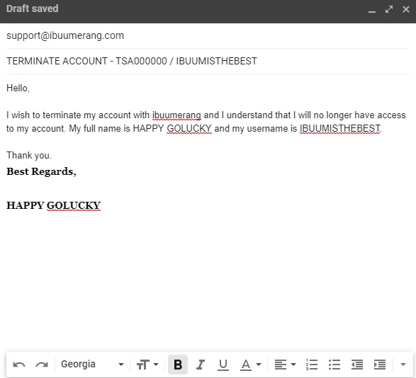 Body of the Email: [State what you wish to do; Terminate account, Suspend account]